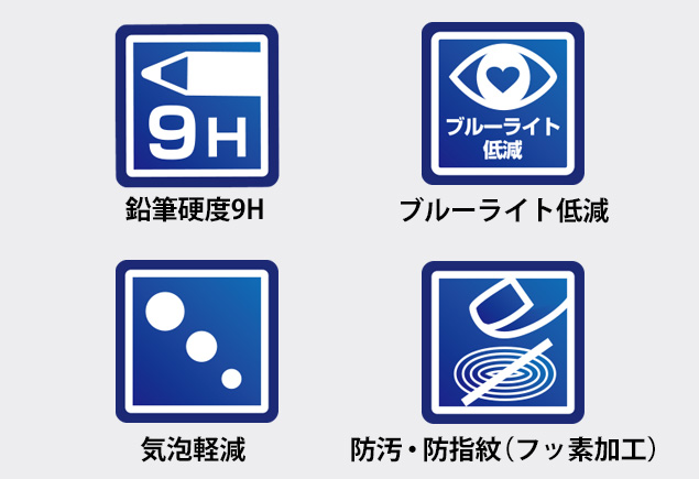・鉛筆硬度9Hのハードコートにより、フィルムが傷付きにくい仕様です